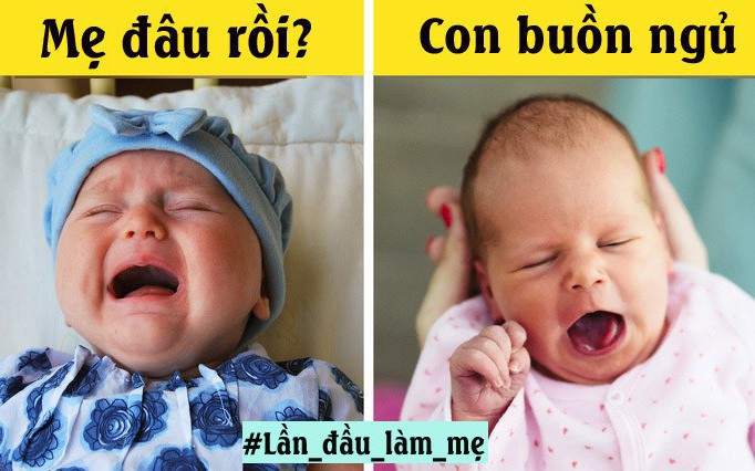 Khóc vì buồn ngủ: Khi em bé muốn ngủ nhưng không thể ngủ được vì một lý do nào đó, tiếng khóc của chúng sẽ nghe như tiếng rên rỉ, sau đó là tiếng ngáp. Em bé cũng sẽ dụi mắt và tai.